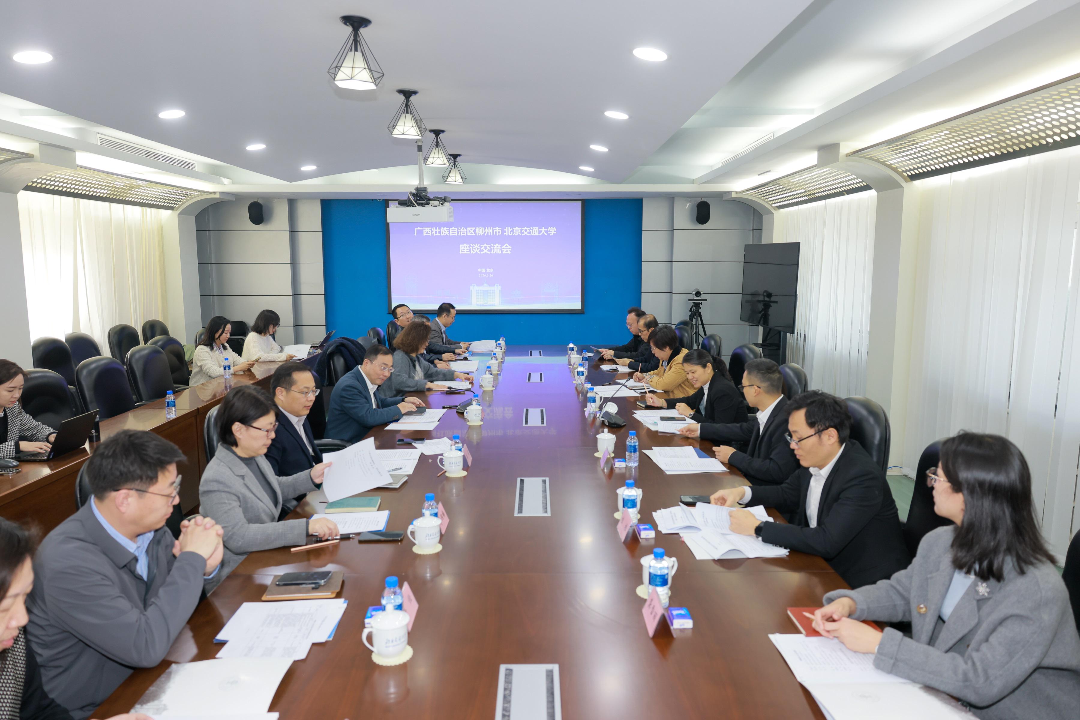 施先亮对邓婉玲一行的到来表示热烈欢迎。 他表示,北京交通大学始终坚持以服务国家战略和区域经济社会发展为己任。柳州市产业基础雄厚、创新氛围浓厚,近年来在推进新型工业化、发展新质生产力方面取得了令人瞩目的成绩,为校地合作提供了广阔空间。他指出,学校在智慧交通、人工智能、交通大数据等领域拥有的科研实力和人才储备与柳州市“10+N”现代工业体系发展方向高度契合。施先亮强调,学校将充分发挥学科优势,精准对接柳州产业发展需求,在协同创新、人才培养、成果转化等方面与柳州开展更深层次、更高水平的合作。他期待双方以此次座谈为契机,进一步健全常态化沟通机制,共同打造产学研融合发展的标杆典范,为柳州建设制造强市、推进新型工业化贡献北交大智慧和力量。
